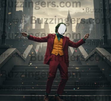 Put on a smile and take the spotlight! 🃏 Step into the unforgettable “Stair Dance” moment from Joker (2019) and transform into Gotham’s most iconic anti-hero. Just share your photo on WhatsApp or email support@buzzingers.com, and choose this scene. Once your payment ($0.99) is done, we’ll send back your personalized Joker image — bold, dramatic, and full of attitude.