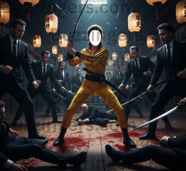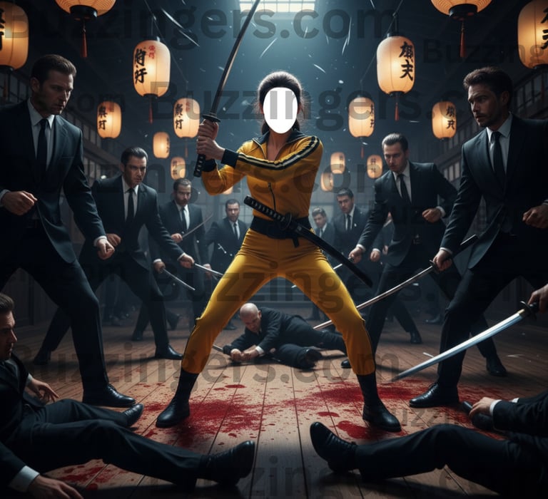 Step into the world of vengeance and style. ⚔️ Channel The Bride from Kill Bill: Vol. 1 and recreate the fierce “House of Blue Leaves” fight scene in her iconic yellow suit. Just share your photo on WhatsApp or email support@buzzingers.com, and choose this scene. Once your payment ($0.99) is complete, we’ll send your personalized Kill Bill image — bold, cinematic, and full of unstoppable energy. 💥