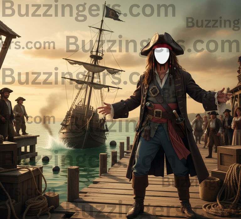 Savvy? ⚓ Step into the boots of Captain Jack Sparrow and relive his legendary entrance — sailing in with swagger and style. Share your photo on WhatsApp or email support@buzzingers.com, and choose this scene. Once your payment ($0.99) is complete, we’ll send you your personalized pirate image — full of charm, chaos, and Caribbean adventure. 🏴☠️