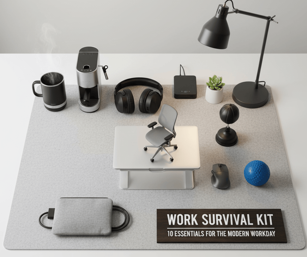 Survive Monday chaos with our Work Survival Kit — caffeine fixes, Wi-Fi saviors & gadgets that make office life bearable.